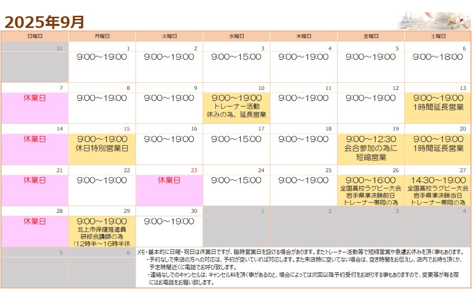 9月の予定表です‼️